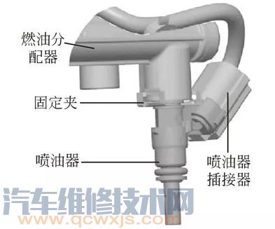 ④ 斷開噴油器插接器,拔下固定夾可將噴油器從燃油分配器上拔出。