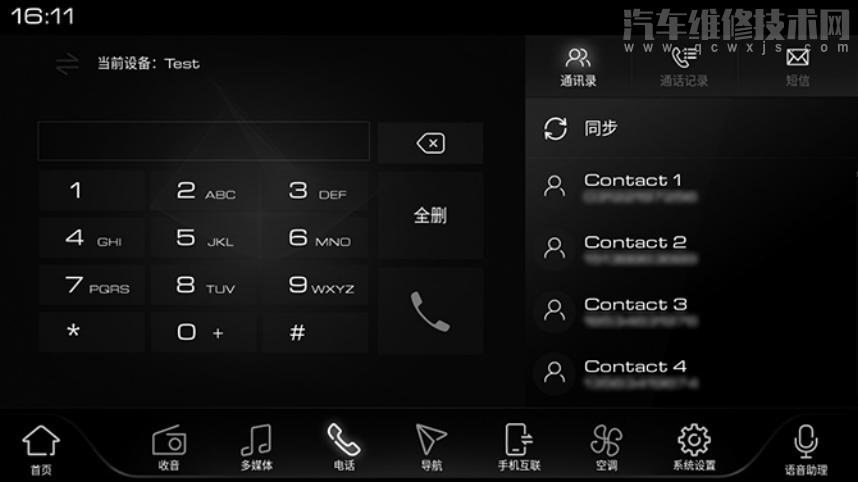 在藍(lán)牙電話界面左側(cè)鍵盤,輸入電話號(hào)碼后,觸摸