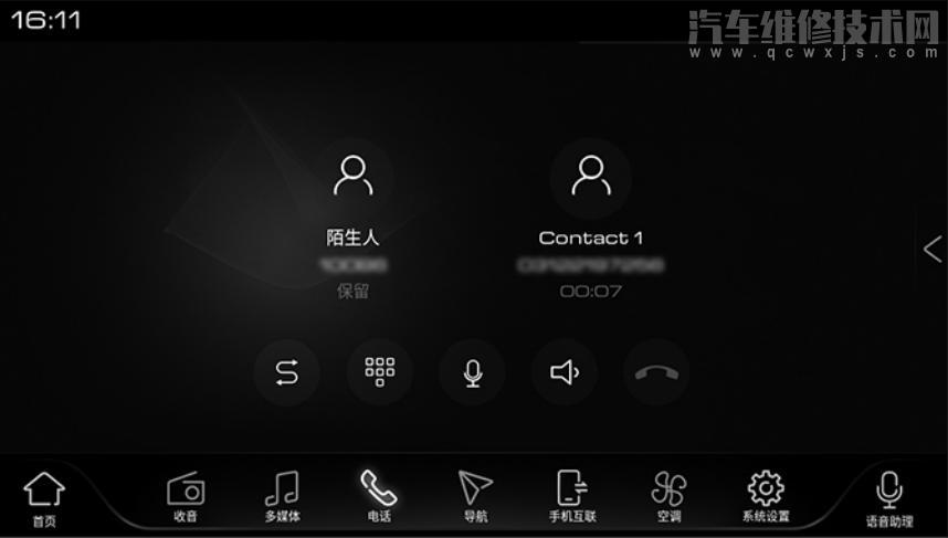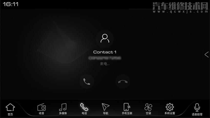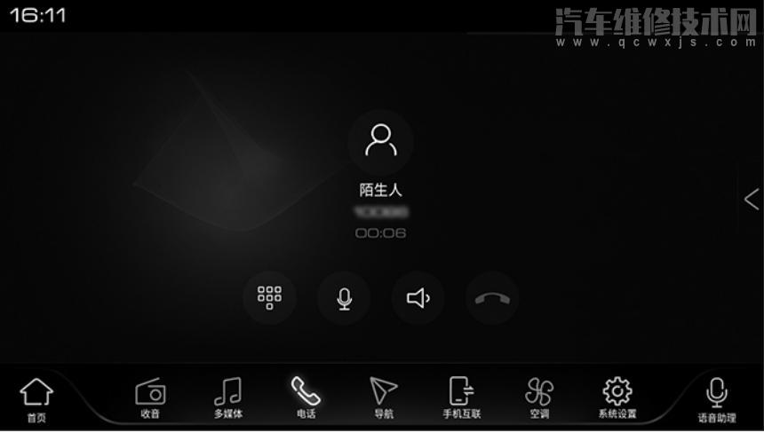 按鈕,表示免提模式,通過車載麥克風(fēng)和揚(yáng)聲器進(jìn)行通話。