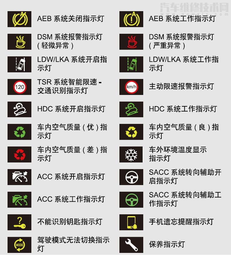 紅旗hs5儀表盤故障燈圖解大全如下:
