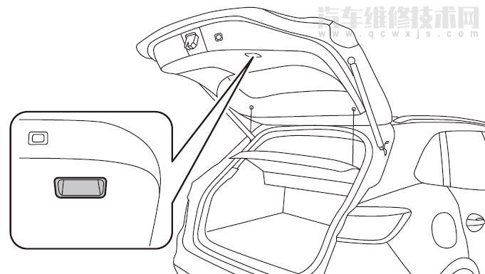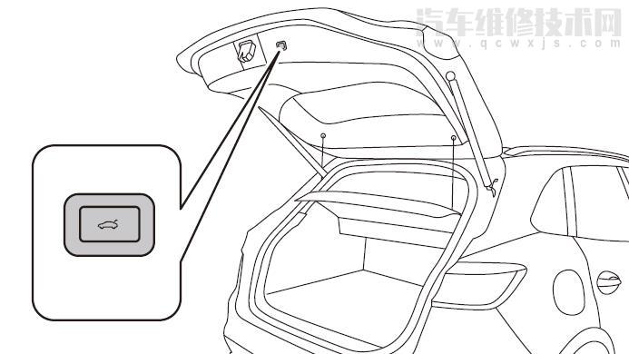 車輛靜止時,按下行李箱蓋內開啟按鍵,解鎖并打開行李箱蓋。