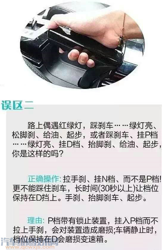 更不能踩住剎車,長時間(30秒以上)讓檔位保持在D擋上。手剎、抬腳剎車、起步。理由:P檔帶有鎖止裝置,掛入P檔而不拉上手剎,會對裝置造成磨損;車輛靜止時,檔仿保持在D會磨損變諫箱