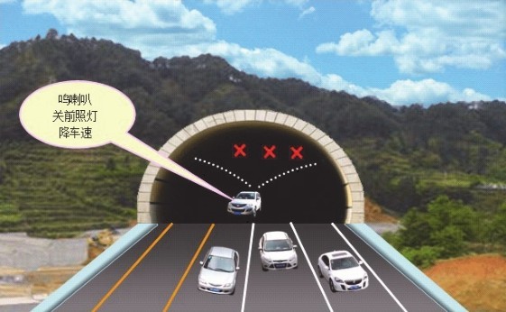 ②進入隧道前要根據交通標志的提示,開啟示寬燈和近光燈,必要時可鳴喇叭。