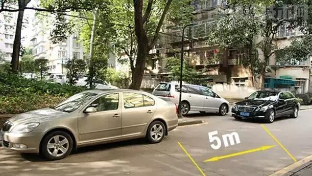 當轎車車頭邊緣剛好“接觸”到前車的輪胎下緣,此時與前車的距離大概是5米。