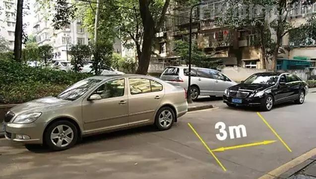 當轎車車頭邊緣與前車保險杠下緣重合,此時與前車的距離大概是3米。