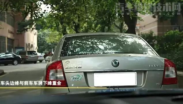 3、車頭邊緣與前車保險杠上緣重合時: