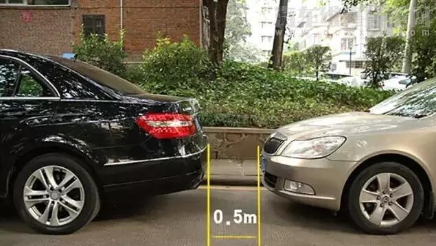 當轎車車頭邊緣與前車車牌下緣重合,此時與前車的距離大概是0.5米。這時候兩車的距離比較合適,可以拉起手剎停車了。