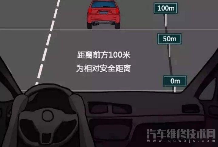 從制動(dòng)起到停車的距離約為45-50米,也就是說(shuō),在100km/h的速度下,必須保持至少90米的距離。高速行駛,即當(dāng)車速超過(guò)100km/h時(shí),安全距離超過(guò)100米。