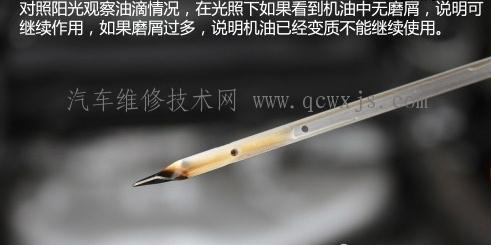 (1)取樣檢查機油,顏色發黑,用手捻搓,失去粘性感并有雜質感。
