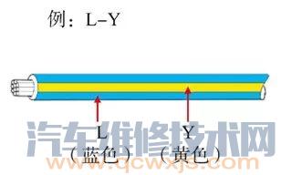 當用雙色線時,第一個字母表示主色,第二個字母表示輔色。例如下圖 中,L表示藍色,Y表示黃色。