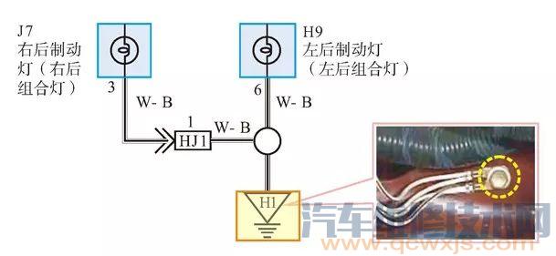 注釋標號G:接線盒(圈中的數字是接線盒的代碼,旁邊是連接器的符號),接線盒涂陰影以清楚地區別于其他零件。