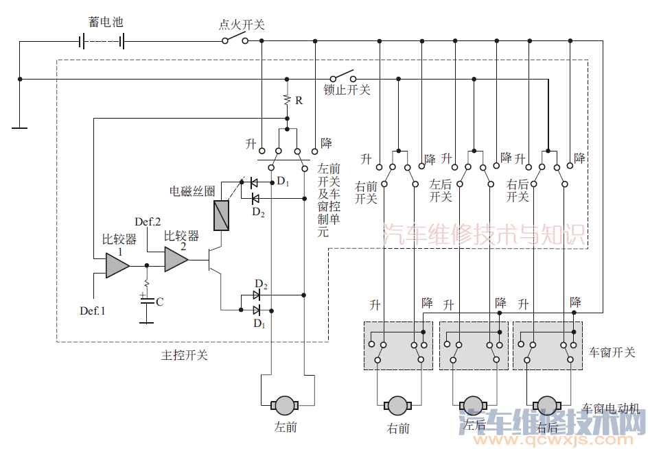 電動車窗的電路圖解析與常見故障的檢修思路&案例分析