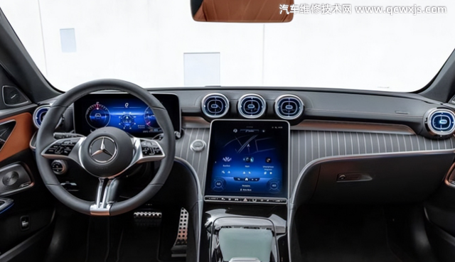 內飾方面,新車同樣與奔馳C級基本一致,標配12.3英寸懸浮式儀表盤、11.9英寸豎置中控屏和全新三幅式多功能方向盤,搭載第二代MBUX交互系統。