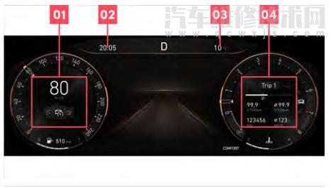 左側信息顯示區可以顯示駕駛員輔助系統等相關信息。車輛行駛時,左側信息顯示區顯示駕駛員輔助系統工作狀態。