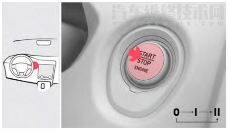2.點火模式 II:隨身攜帶遙控鑰匙,長按 START/STOP ENGINE 按鈕,可以從模式0或I切換到模式II。系統在幾秒鐘內完成自檢;此模式下大燈和霧燈等大多數電氣設備都能使用。