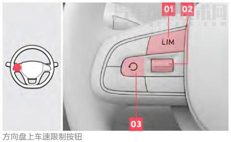 如想用車速限制控制車輛速度,則必須先讓車速限制進(jìn)入準(zhǔn)備模式,然后再啟用車速限制。