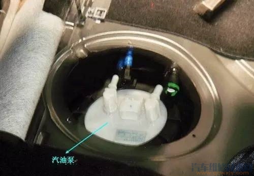 蓋子拆下后就可以看到汽油泵了,它實際是安裝在油箱上,但拆油箱很麻煩,所以在這個地方開個孔,在汽油泵損壞時可以方便的更換。