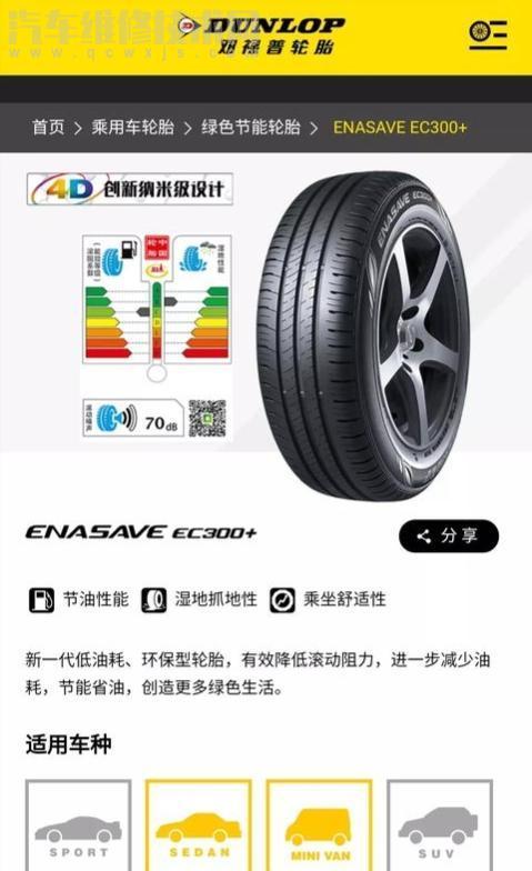 鄧祿普EC300系列產品屬于節油型輪胎,顧名思義這款輪胎主打的就是節能環保,但節油型輪胎都有一個短板,那就是摩擦系數比較低,所以干濕路面抓地力都比較一般,操控性也一般,輪胎膠質比較硬,舒適型也不是太好,唯一的優點就是耐磨,適合對耐磨性有要求的客戶。