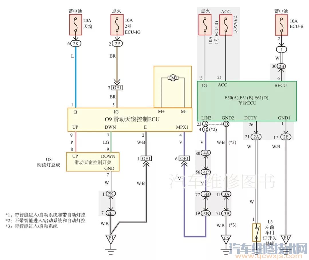 信號到滑動天窗控制ECU,滑動天窗控制ECU控制天窗