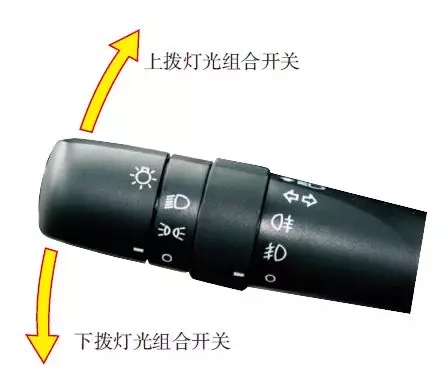 其末端可繞手柄的軸線扭動(下圖),控制其小燈、大燈。分三擋: