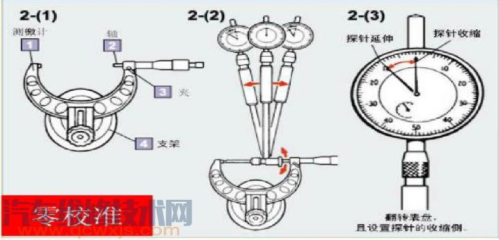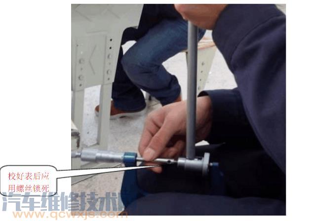 (3)將量缸表的指針設定到零點(在這一點指示表指針在側頭的收縮側回轉)