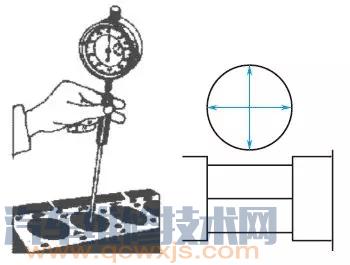 ⑤ 測量圓度和圓柱度誤差。測取最大磨損缸徑后即測取同一橫截面內的最小缸徑。為快捷起見,通常測取與最大磨損直徑相垂直的缸徑作為該平面內的最小磨損缸徑。