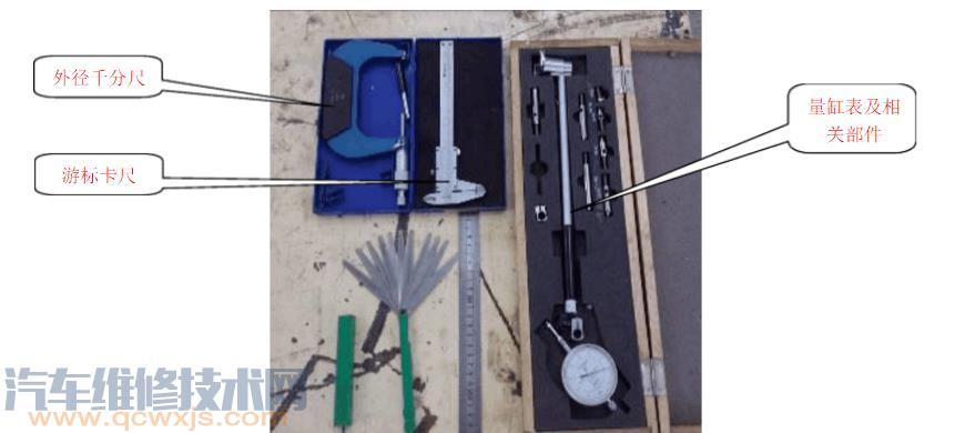 ①準備工具: 外徑千分尺 量缸表及相 關部件 游標卡尺 氣缸 氣缸體;②組裝量缸表: 百分表 表桿;