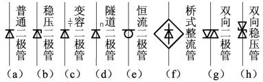 圖(h)是雙向穩壓二極管符號,它表明該管是由兩個反向的穩壓二極管構成的。二極管的文字符號用VD表示。