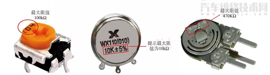 可變電阻外殼上標注的阻值是標稱值,是可變電阻兩固定引腳之間的阻值,一般稱為可變電阻的最大阻值,通常采用直標法或數碼表示法。