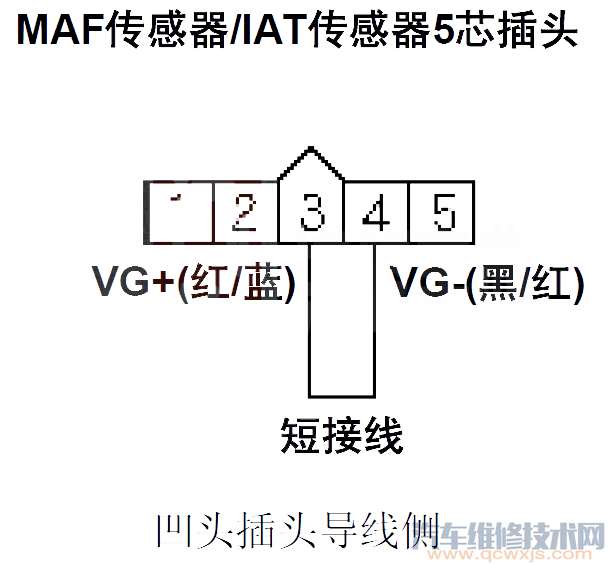 09 利用一根短接線連接MAF傳感器/IAT傳感器5芯插頭3號端子與4號端子。