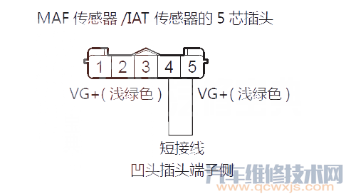 09 利用一根短接線連接MAF傳感器/IAT傳感器5芯插頭的3號(hào)端子與4號(hào)端子。