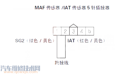 05 用跨接線連接MAF 傳感器/IAT 傳感器5 針插接器1 號和2 號端子。