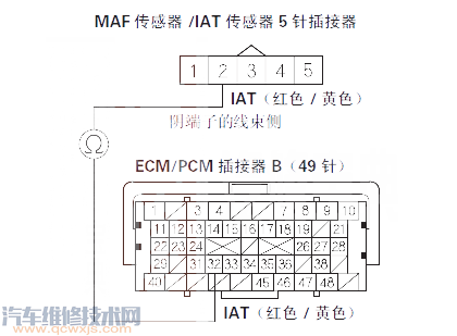 否,間歇性故障,此時系統正常。檢查IAT 傳感器和ECM/PCM 是否連接不良或端子松動。