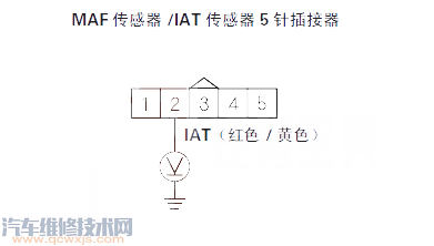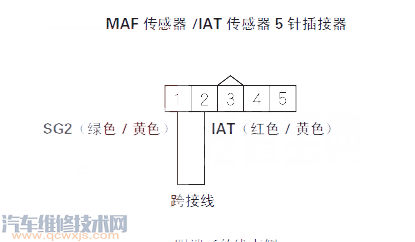 05 用跨接線連接MAF傳感器/IAT傳感器5針插接器1號和2號端子。
