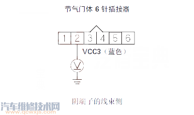 10 測量節(jié)氣門體6 針插接器2 號端子和車身搭鐵之間的電壓