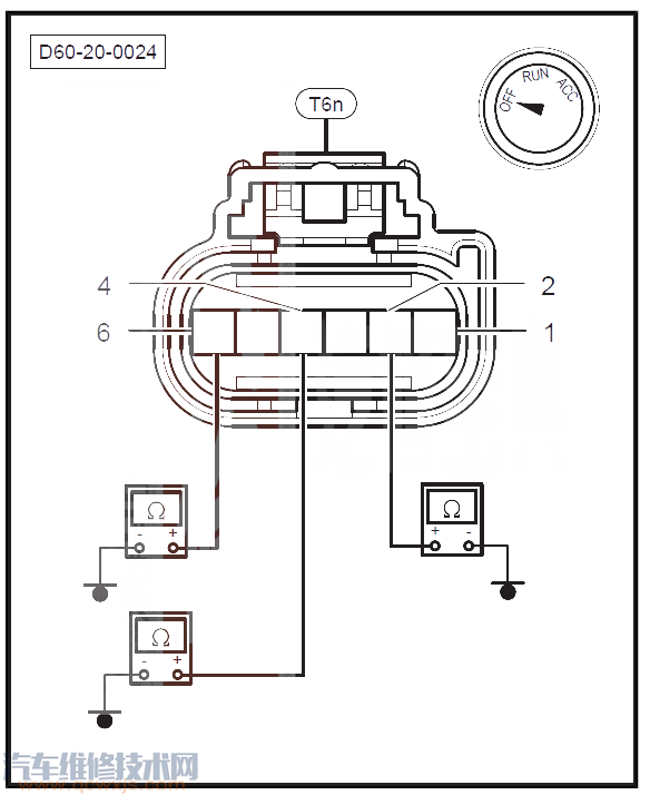 02-11 測量節氣門位置傳感器插頭T6n/2針腳、T6n/4針腳、T6n/6針腳與車身接地之間導線是否出現短路情況。
