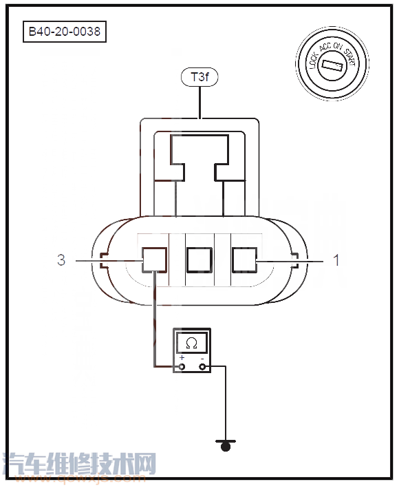 02-01 點火開關 LOCK 狀態時,斷開曲軸位置傳感器插頭T3f,檢查T3f連接插頭是否有裂痕和異常,針腳是否腐蝕、生銹。