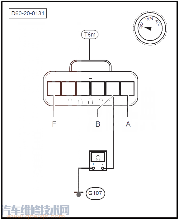 02-13 測量T6m/b針腳與車身接地之間電壓值,檢查導(dǎo)線是否對電源電路出現(xiàn)短路情況。