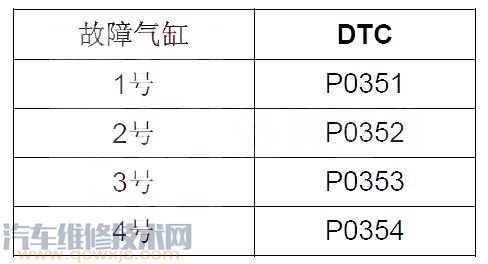 是否顯示DTC P0351、P0352、P0353和/或P0354?