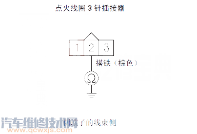14 檢查1號點火線圈3針插接器3號端子和車身搭鐵之間是否導通。