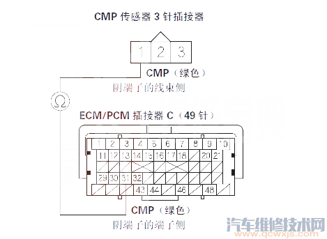 是,修理ECM/PCM (C31) 和CMP傳感器之間線束的短路,然后進行18步。