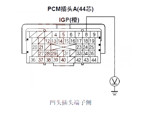 14 測(cè)量PCM插頭端子A8與車身地線之間的電壓。