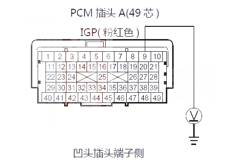 12 檢查PCM插頭端子A7與車身搭鐵線間的導通性。