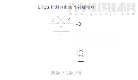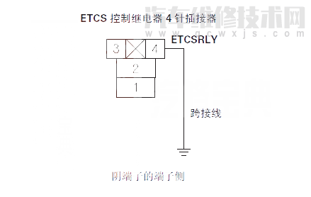17 用跨接線連接ETCS 控制繼電器4 針插接器4 號端子與車身搭鐵。