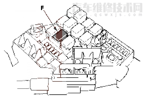 17 拆下發動機蓋下保險/繼電器盒內的ETCS控制繼電器(F)。