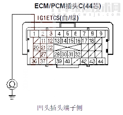 14 檢查ETCS控制繼電器4芯插頭3號端子與ECM/PCM插頭C1端子之間的導通性。