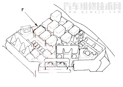 17 拆下發動機蓋下保險/繼電器盒內的ETCS控制繼電器(F)。