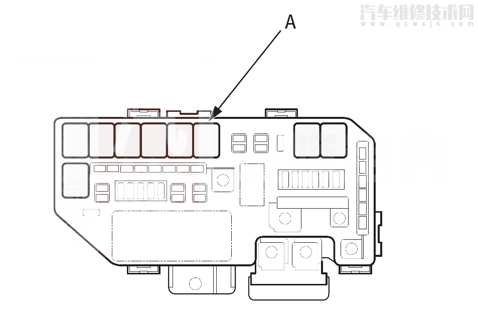 17 拆下發(fā)動機蓋下保險絲/繼電器盒內(nèi)的ETCS控制繼電器(A)。