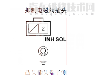 08 測量抑制電磁閥插頭2號端子與車身地線之間的電阻。