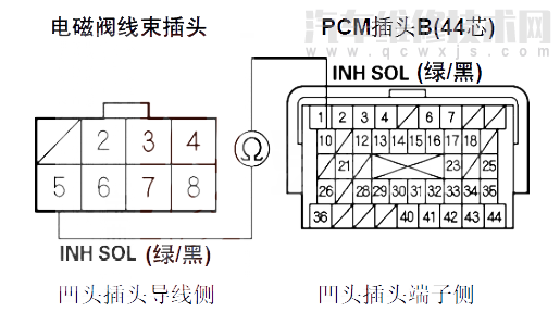 否,間歇性故障,此時系統正常。檢查電磁閥線束插頭、PCM與抑制電磁閥端子之間是否連接不良或松動。